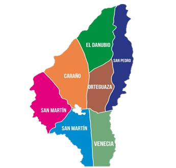 El municipio de Florencia, capital del departamento de Caquetá y conocida como “La puerta de Oro de la Amazonia Colombiana”, ubicada en la región Centro Sur; con coordenadas latitud Norte 1°36′51″ y longitud Oeste 75°36′42″. Cuenta con una superficie terrestre de 2 292 Km2, su altitud media es de 242 msnm, su precipitación media anual es de 3840 mm y presenta una temperatura promedio anual entre 28°C a 32°C. Está constituida por cuatro comunas en su área urbana (figura 2) y siete corregimientos en su área rural (figura 3).(9)