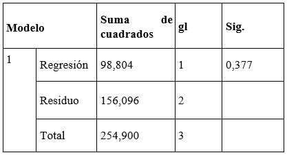 Según la figura 19, el valor de significancia de 0,377, al ser mayor que el umbral de 0,05, refuerza la conclusión de que no se invalida la hipótesis nula (H0), es decir, las barreras fitosanitarias no tienen una influencia significativa en las variaciones porcentuales de las exportaciones de paltas peruanas entre 2012 y 2019. Esto sugiere que las fluctuaciones en las exportaciones de paltas no están relacionadas de manera directa o relevante con las medidas fitosanitarias implementadas en ese período. Las variaciones en las exportaciones podrían estar más vinculadas a factores externos como la demanda global de paltas, la oferta de otros países productores, cambios en los precios internacionales o incluso políticas comerciales favorables, como los acuerdos comerciales y los accesos preferenciales a mercados clave. También podría ser que los productores peruanos han logrado adaptar sus prácticas agrícolas y de exportación para cumplir con las regulaciones fitosanitarias sin que esto afectará significativamente el comportamiento de las exportaciones en términos porcentuales.