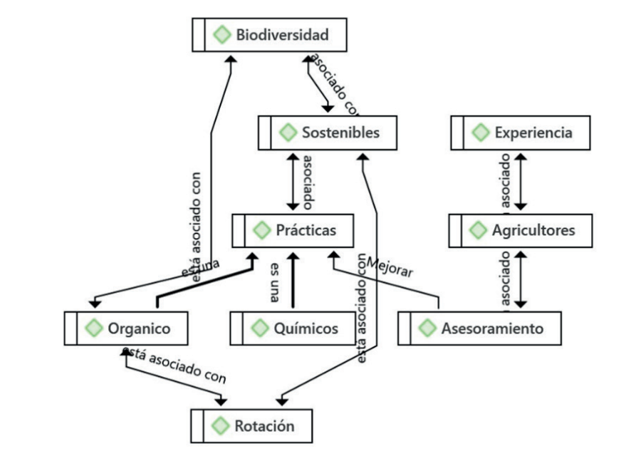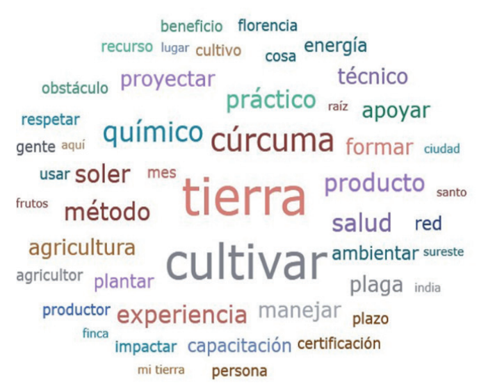 The exploratory analysis of turmeric cultivation reveals an interconnected network of key elements. At the center of this network is the product, turmeric, the cultivation and management of which requires a careful and coordinated approach. As a fundamental part of this network, producers depend on land, chemicals, and human resources to plant and cultivate turmeric roots. However, agroecological methods and adequate training are crucial to maximize profit and promote health. Certification guarantees standards of quality and sustainability, strengthening confidence in the product. Producers can access technical and commercial support through networking and collaboration, enabling them to expand their reach and diversify their products. This analysis provides a comprehensive basis for visually visualizing the interviewee's experience (figure 1).
